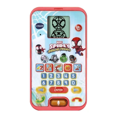 Spark your child's motor skills with this Vtech Spidey learning phone. It's voice-activated, so your little superhero fan can pretend to call Spidey and hear all about his amazing friends. Watch your little one have a fun time playing, interacting and imagining being a star in the Spidey world. They can pick from 4 learning games - count bananas, matching pairs, matching coins, and avoid the pumpkins to keep boredom at bay. It gets working on their problem-solving, mathematical and imaginative skills - and they can have a blast while they're at it. Plus, the 6 character buttons for Spidey, Miss Morales, Ghost Spider, Hulk, Ms. Marvel and Black Panther will make their day with cool voice messages. Fun, right? Good to know - Watch your kid jump in joy interacting with the superhero himself - it features the real voice of Spiderman - The navigation buttons help improve their hand-eye coordination while playing - Customise the settings to dial up the learning without letting go of the amusing play - Double the fun with witty and fun animations popping up on the LCD screen