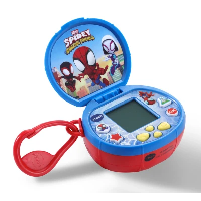 The VTech Spidey and His Amazing Friends: Spidey On-the-Go is a portable educational device featuring five interactive games and a Web Lab activity that teach numbers, opposites, and problem-solving, complete with Spidey-themed animations and customizable clock faces—ideal for children aged 3 and up.