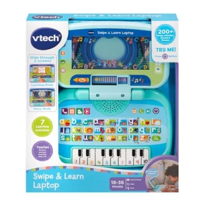 VTech Swipe & Learn Laptop, Educational Toy for Toddler with Phonics, Counting, Computer Skills, Encourages Language Development, Logical Thinking, Gift Ages 18, 24 Months +, English Version