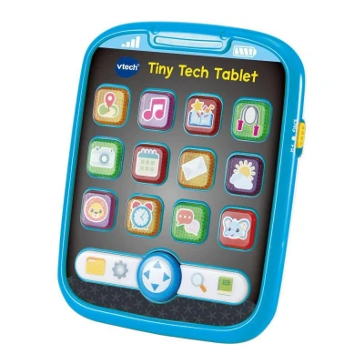 This Vtech Tiny Tech tablet puts a world of fun and learning at your child's fingertips. The 12 brightly-coloured app buttons play catchy tunes, playful phrases and cool sounds about everyday things. From maps and exercise to entertainment and the weather, learning is interactive and engaging. They can pretend to send messages, set alarms, take pictures and check the calendar, just like a real tablet. And it's bilingual too. Just flick the switch and it'll play all the phrases in French to help them with their language development.Good to know- The lion and elephant buttons add a touch of fun and adventure with animal friends- Its compact size and simple controls are perfect for tiny hands and curious minds- It's powered by 2 x AAA batteries - no more searching high and low for the chargerPlease note: This toy produces flashes that may trigger epilepsy in sensitised individuals.