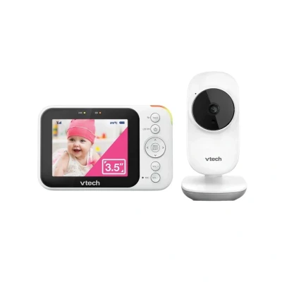 Why Buy Me? The VTech VM4252 3.5" Video Monitor is a practical and easy-to-use baby monitor designed to help you keep a close eye on your little one at any time of the day. With its 3.5” high-resolution colour display, you can clearly see every movement, while the secure 2.4GHz connection technology provides a private and uninterrupted signal without requiring Wi-Fi. Features such as automatic night vision, two-way talk, a room temperature sensor, and soothing lullabies help create a more comfortable sleep environment for your baby. It’s a reliable helper that allows you to easily monitor your baby from different areas of your home. Brand: VTech Product Type: Baby Monitors Product Sub-type: Video Baby Monitors Details : Usage & Age Range • Suitable for use from birth. • A video baby monitor designed to safely monitor your baby remotely. Video & Camera Features • Provides live viewing via a 3.5” high-resolution colour LCD display. • 2x digital zoom allows you to view your baby more closely. • Camera angle can be manually adjusted. Night Vision • Automatic infrared night vision provides clear images in low-light conditions. • Allows you to monitor your baby easily even in dark rooms. Connectivity & Technology • Uses secure 2.4GHz FHSS digital technology for a private and stable connection. • Operates without the need for a Wi-Fi connection. • Offers a range of up to 300 metres. Audio & Communication • Two-way talk function allows parents to comfort their baby remotely. • Built-in lullabies and soothing sounds help support your baby’s sleep routine. Sensors & Notifications • Room temperature sensor allows you to monitor the nursery environment. • 3-level sound indicator helps you visually monitor your baby’s noise level. • Sound activation mode turns the screen on automatically when sound is detected. Parent Unit Features • Portable parent unit allows convenient monitoring around the home. • Rechargeable battery provides up to approximately 19 hours of video streaming. • Audio-only mode can last up to approximately 31 hours. Technical Features • Secure digital video and audio transmission for reliable monitoring. • Durable body made from plastic and metal materials. What’s in the Box • 1 x Parent unit • 1 x Camera (baby unit) • Power adaptors • Instruction manual
