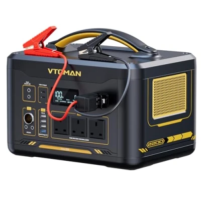 【2200W Constant-Power Power Station】VTOMAN portable solar generator has a rated output of 2200W (4400W peak power) and provides a pure sine wave output. The Jump 2200 portable power station with Jumper Cable, can power devices with a rated power of less than 2200W, and the Jump Start function transforms the power bank into a reliable car battery recovery tool. It provides you with a backup emergency solution. 【Capacity Expandable to 3096Wh】VTOMAN 2200W portable power station has a large capacity of 1548Wh, and the capacity can be expanded from 1548Wh to 3096Wh with VTOMAN Jump 1500 Extra Battery (Sold separately) to provide , the built-in premium LiFePO4 battery features 3,000 cycles of lifespan before down to 80% of its original capacity, which can satisfy both your daily needs and long-term use purpose. 【Integrated Car Jump-Start Function】 Transform the power station into a reliable car battery saver. By connecting the included safe jumper cable to the 12V car port, you can quickly jump-start dead 12V batteries for most gasoline and diesel vehicles, making it an all-in-one solution for roadside emergencies and outdoor travel. 【Professional & Safe Jump-Start Solution】 Engineered for reliability, our jumper cable set features robust 8-AWG wires (Red: 380mm / Black: 360mm) with copper-toothed clamps (Clamp-03) and high-quality PVC insulation. This professional-grade construction, compliant with RoHS standards, ensures maximum electrical conductivity, durability, and spark-free operation for safe vehicle rescue. 【Multiple charging methods】VTOMAN Jump 2200 battery power station 2200W features 2x DC5521(5.5mm*2.1mm) input ports that supports 200W Max input power in total. It can be recharged by three ways: 1)Recharging by wall charger(Included): about 8 hours to full; 2)Recharging by 12V car outlet(Car charger included): about 10 hours to full; 3)Recharging by 200W solar panels: about 10-13 hours to full. VTOMAN solar panel can be purchased separately or combined with Jump 2200 power station., Manufacturer: Shenzhen Carku Technology Co.,Limited