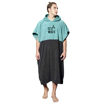 Vulken Extra Large Teal Blue Thick Hooded Beach Towel Changing Robe. Surf Poncho Men for Easy Change in Public. Quick Dry Microfiber Towelling The Beach, Pool, Lake, Water Park. L/XL