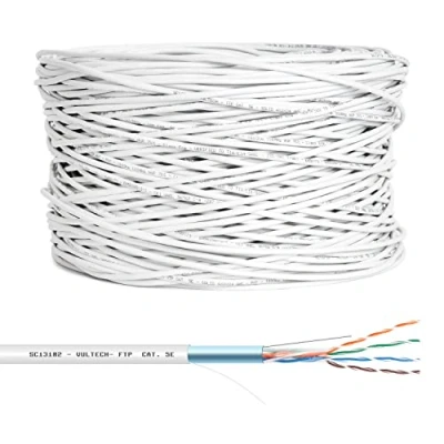 [ Ethernet Cable Cat. 5e shielded 305m in skein ] Fully shielded (FTP) 305m skein of LAN cable, compliant with Category 5e standard. Provides high protection against electromagnetic interference, improving signal stability and transmission speed even over long distances. Ideal for professional installations. [ Flexible CCA Conductors: Trace Copper and Aluminum] The cable is made of CCA (Copper Clad Aluminum) conductors, a combination that ensures bending strength, durability and excellent electrical performance. Consisting of 4 wired pairs plus ground wire, it allows for safe laying even in complex or extensive installations. [ Supports Gigabit Ethernet Networks & Video Surveillance Systems] Compatible with 10/100/1000Mbps networks, perfect for structured cabling, connection between switches, modems, routers, NAS, servers and IP video surveillance systems. Great choice for homes, offices, warehouses and businesses that need a stable and high performance network. [ Dispenser with center hole for quicker installations] Packaged in a handy cardboard box with central hole that allows for smooth, tidy and tangle-free unrolling. Ideal for electricians, installers and network technicians who need to handle long routes quickly, safely and professionally. [ Wide Compatibility with Network Accessories and Devices] Compatible with VulTech accessories such as CRI-01 crimper, SN21401 RJ45 connectors and SN21424 plug covers, for precise and professional wiring. Can be used with any device with RJ45 port: routers, modems, switches, smart TVs, PCs, laptops, network cards, consoles, printers, IP cameras, servers, network plugs, hubs and ADSL systems. CE and RoHS compliant. VulTech skeins are supplied exclusively in dedicated cardboard and the cable is always VulTech branded. If unbranded it is not an original product.