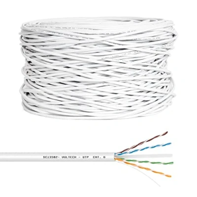 Features: 305 Metres | Category 6 UTP | 8 Conductors (4 x 2) 23 AWG 0.55mm Solid FEATURES | The skein consists of 4 pairs of braided cables with a CCA (copper clad aluminium) core of solid type, ground wire and an internal separator that isolates the pairs of wires. HIGH SPEED DATA TRANSMISSION | Up to 10Gbps data transmission rate, it is recommended for building or connecting network and video surveillance systems. Provides stable connections on all devices such as computer, security camera, PC, game console or any connection within a LAN network. EASY INSTALLATION | The outer PVC jacket allows repeated bending without risk of damage, thus prolonging the life of the cable. It is packed in a cardboard with a central hole, which allows for a simple and never messy passage of the Ethernet wire. COMPATIBILITY with any device with RJ45 port: Router, Modem, Switch, Smart TV, Network Cards, PC, Laptop, 4k HDTV, Video Game Console, Hub, Network Plugs, Printers, IP Cameras, Wi-Fi Routers, Servers, ADSL, Internet LAN. PACKAGING: Vultech skeins are always contained in the carton and never delivered with simple plastic packaging. Even the cable is totally branded, where ever it was not it is not Vultech