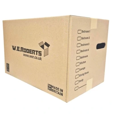 W.E. Roberts 20 x Strong Large Cardboard Moving House Boxes 45.7cm 28.8cm with Carry Handles and Room List Manufactured in the UK from FSC acredited materials. (20)