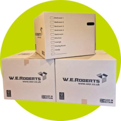 Extra Large Cardboard Boxes designed for packing and moving house, measuring 52cm x 52cm x 40cm. Compact yet spacious big box will assist you in your moving or storage task! These large boxes for moving house can store a 108 litre capacity per box which will help you conveniently store or move your items. Each moving boxes packing kit consists of 10 packing boxes. Heavy duty cardboard storage boxes, made out of strong 200T Kraft paper will ensure durability and easy stacking so you can stack or move your belongings confidently, giving you a peace of mind. As a manufacturer of box packaging, at W.E. Roberts we take pride in crafting reliable boxes for your needs. With a long life experience in box manufacturing our commitment to quality stands strong! UK Made packing box is not only robust but also environmentally conscious, FSC approved each box reflects our commitment to sustainability and customer satisfaction.