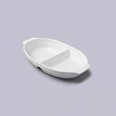 This W M Bartleet & Sons Divided Dish 33cm is the perfect dish to serve various dips, vegetables and snacks in, saving space at the dinner table.Finished in a smooth glaze, this divided dish looks wonderful served either on the side of a plate to keep flavours separate, or completely separate as a chip and dip snacksck or a self-serve vegetable dish.Made from 100% premium quality white porcelainClassic, elegant design, perfect for saving spaceSize: 33cmDishwasher, oven and freezer safe