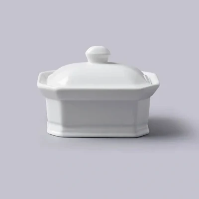 Premium quality White porcelain serving dish designed to hold and serve pté, butter or margarine English design, traditional style perfect oven proof dish for cooking meatloaf and other recipes This stylish traditional design premium butter dish/ terrine is great for the table, ideal for keeping proper butter soft for toast or baking Durable and versatile serve ware, classical White crockery food holder, super for home and catering use, smooth gloss glaze finish High quality vitrified porcelain, dishwasher, oven, microwave and freezer safe, Easily stored with other tableware Internal measurement : 7.5cm x 4.5cm x 3.5cm Note : The lid is not tight fit, it is simply there to protect the butter from foreign bodies
