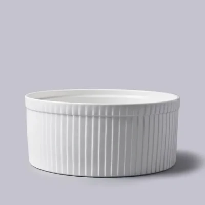 A premium quality White porcelain classic bakers bowl, ideal for preparing, baking and serving of Soufflé or a variety of sweet and savoury baked dishes A stylish kitchen design icon, perfect for meat, fish cheese dishes, starters or desserts. Great for serving vegetables, pasta and rice This multi-use ceramic kitchen cooking and baking dish, for the best puddings Durable and versatile serve ware, classical White crockery baking dish, super for home and catering use, smooth gloss glaze finish High quality vitrified porcelain, dishwasher, oven, microwave and freezer safe, Easily stored with other tableware