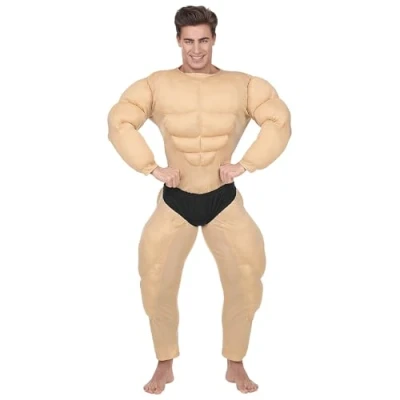 Great effect design: the muscular jumpsuit with black briefs gives you a muscular physique Practical to use: with a zipper on the back for easy on and off Size: Adult costume is available in size XXL Additional options: combine with accessories for an even more personalized look Suitable for parties: carnival, mardi gras or themed parties, leaving a lasting memory, Manufacturer: Widmann S.r.l.