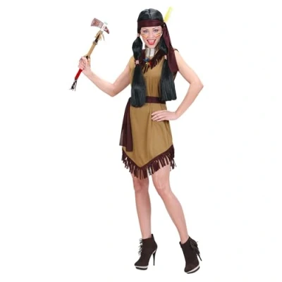This costume is the ideal choice to transform into a fearless Indian woman at the next fancy dress party or carnival Adult costume is available in size XL The dress, belt and scarf are included, so you can transform yourself into an Indian in no time at all The tan dress is embellished with dark fringes at the neckline and bottom hem for a cozy look To complete the costume and make the look even more authentic, we recommend matching accessories such as a tomahawk (not included), Manufacturer: W WIDMANN MILANO Party Fashion