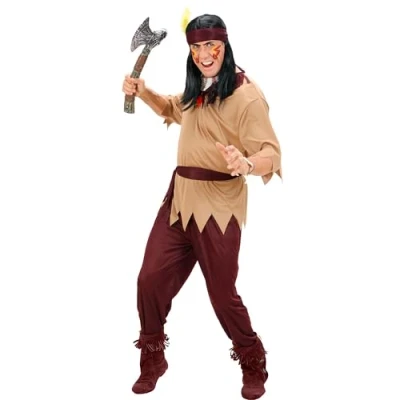 The Indian costume is ideal for carnival, theme parties in the Wild West style or other themed events Included are a top, trousers, belt and headband - everything you need for an authentic Indian outfit The top in beige combined with the dark brown trousers, belt and headband ensures a harmonious look The costume is available in size XL for adults Combine the costume with a tomahawk or other accessories to make the outfit even more impressive (not included), Manufacturer: Widmann S.r.l.