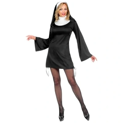 With this costume set, you can transform yourself into a sexy nun that will attract attention at the next party The costume for adults is available in size XL Included is the black mini dress with hood, so you can transform into a seductive nun in no time at all To complete the fancy dress costume and make the look even more authentic, we recommend matching accessories such as a cross necklace (not included) With this fancy dress, you will not only become a nun, but also ensure that you attract attention and provide conversation at any party, Manufacturer: W WIDMANN MILANO Party Fashion