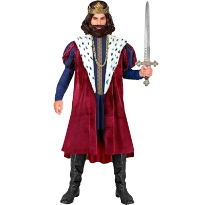 Majestic design: with red cape, blue top and gold accents, you will feel like a king from a medieval court state Royal appearance: the outfit in size S offers an impressive overall look for men thanks to the long cape and the elegant look 4 PIECE COSTUME SET: includes a sleeveless coat, a sumptuous chain, a royal crown and an embellished top, all coordinated Eye-catching colour combination: elegant blue meets bold red with gold details, underlined by white faux fur with black dots Versatile use: whether it's carnival, theatre stage or theme party, this costume attracts admiring glances everywhere, Manufacturer: Widmann S.r.l.
