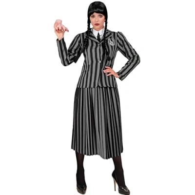 Dark Girl costume for women: stylish women's costume with classic school uniform look, inspired by the popular Dark Girl character from the series - ideal for fans and cosplay lovers PACKAGE INCLUDES The two piece costume consists of a black and grey striped jacket and a matching skirt for an authentic look SIZE:The fancy dress is available in size XS for adults Styling tip: completely transform yourself into the mysterious schoolgirl, just wear a matching wig and the look is complete (not included) Versatile use: whether scary party, theme party or carnival with this dark girl costume you will be an eye-catcher, Manufacturer: Widmann S.r.l.