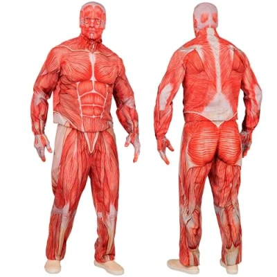 REALISTIC MUSCLE LOOK The detailed anatomy representation with precise muscle structure gives the costume a lifelike and eye-catching effect Comfort meets fit: made from lightweight polyester and available in size M, the costume sits comfortably and offers ample freedom of movement - even during longer events QUICK READY TO USE This set is more than a disguise - it's a cleverly assembled fast costume that includes all the pieces in the package, you just slip in and are ready for their appearance right away COMPLETE COSTUME SET The set consists of top, trousers, gloves and mask - all visually coordinated so you can appear as a closed character Impressive on any occasion: whether for Halloween, carnival or theme parties - this costume attracts attention, creates a good mood and will be remembered, Manufacturer: Widmann S.r.l.