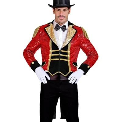 Sparkling tailcoat with sequins that makes you shine in the spotlight The jacket for adults is available in size XXL The elegant red is refined by golden details that make your presence look even more magical The glittering gold collar and sumptuous fringed shoulder flaps add luxurious accents Transform yourself into a charismatic circus director, a fearless bullman, a rock star or a stunning showman, Manufacturer: W WIDMANN MILANO Party Fashion