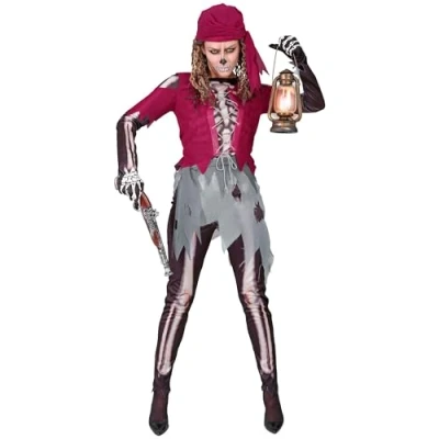 This set in size S contains everything you need for an authentic pirate skeleton outfit - shirt with corset and skirt, leggings and a headscarf The headscarf and corset in intense burgundy colour provide a vibrant colour accent The leggings as well as the chest area and arms of the shirt are decorated with a realistic skeleton pattern that provides a scary cool look The grey skirt and corset are designed in a shred style, making the costume even more authentic and scary Suitable for Halloween, carnival or other themed parties - this pirate skeleton costume will make you stand out and make an unforgettable appearance, Manufacturer: W WIDMANN MILANO Party Fashion
