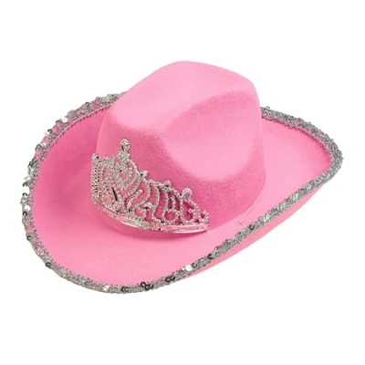 Party hat for adults: stylish pink cowboy hat with sparkling crown for men or women looking for an eye-catching highlight for their party or fancy dress Glittering highlight: with silver sequin trim and sparkling tiara, the hat attracts everyone's attention and sets any outfit in the scene Bachelor Party Hat: Makes bride or groom instantly recognizable and provides an eye-catching look MULTIPURPOSE Whether it's cowboy, cowgirl, ranger or princess costume, this hat fits in many occasions like carnival or theme parties For special performances Whether celebrating, photo shoot or on stage, with this eye-catching party hat, any event will be an unforgettable experience, Manufacturer: Widmann S.r.l.