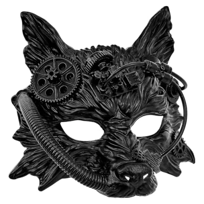 Distinctive wolf design in steampunk style: with eye-catching wolf ears, visible gears and tubes to the snout, this mask makes for a strong appearance DETAILED AND EYE-CATCHING The intricate design with mechanical elements attracts everyone's attention Black coloring with character: the dark look enhances the mysterious, powerful look of the mask Suitable for men and women: unisex design for anyone looking for an eye-catching accessory MULTIPLE USES: for cosplay, steampunk festivals, Halloween, carnival or fancy parties, Manufacturer: Widmann S.r.l.