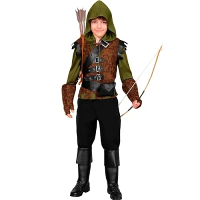 Adventurous look: the archer costume set with hood, vest and sash turns children into little heroes for carnival, Halloween or role play FOR LITTLE ADVENTURES: size 116 cm for children from about 4 to 5 years old, easy to put on and fit for dress up parties, theatrical performances or birthdays COMPLETE OUTFIT: Includes top with hood and vest, sash with buckle, belt with pocket, gloves and boot covers for a harmonious overall look Lightweight and comfortable: made of lightweight polyester, the costume ensures comfortable wearing and freedom of movement when playing, dancing or romping Versatile use: whether brave archer for carnival, adventurer during role play or hero in the school theatre - the outfit is suitable for many occasions, Manufacturer: Widmann S.r.l.