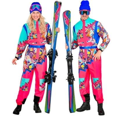 Retro highlight: the turquoise-pink costume jumpsuit with bright neon patterns radiates 80s vibes and provides an unmissable appearance at carnival, parties or festivals UNISEX FIT: Designed for women and men in size S, the lightweight polyester material provides comfortable fit and makes the suit an eye-catching choice for any celebration COMPLETE SET: The colour-coordinated belt creates a harmonious costume set that is ready to use Party mood: whether alone, as a couple or group costume - with this colourful onesie you can make any carnival party, après ski party or themed event shine Practical comfort: thanks to the front zip and elastic waistband on the sleeves, the ski suit is comfortable to wear when celebrating and dancing, Manufacturer: Widmann S.r.l.