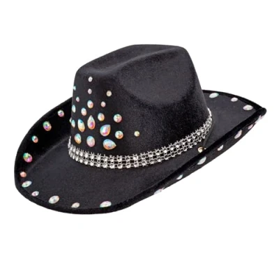 Adult Party Hat:Stylish black cowboy hat with sparkling rhinestones for men and women who want to stand out and enjoy a glamorous look Elegant glitter design: with sparkling gemstones and rhinestones around hat crown and brim for an extravagant and stylish appearance For bachelor parties: makes the bride or groom instantly recognizable and provides an eye-catching look Versatile use: whether cowboy, cowgirl, ranger or other costumes, this hat is suitable for many occasions such as carnival or theme parties FOR SPECIAL PERFORMANCE Whether on the dance floor, celebrating or taking a photo shoot, this party hat will attract attention and add that extra touch to any outfit, Manufacturer: Widmann S.r.l.