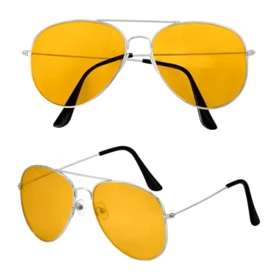 These stylish aviator glasses are ideal as an accessory for different characters The silver frame gives the glasses a modern look The yellow glasses provide a cool retro flair and are a real eye-catcher Ideal for various occasions such as 80s theme parties, carnival or festivals - this accessory rounds off your outfit perfectly These glasses are designed as party glasses and do not provide protection, Manufacturer: Widmann S.r.l.