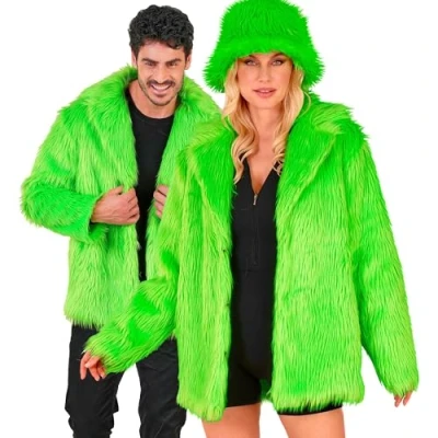 Cuddly eye-catcher: the neon green plush jacket immediately attracts attention thanks to its eye-catching fur look and brings an extravagant look to any outfit UNISEX FIT FOR EVERYONE: with the size S/M and its casual cut, the jacket is suitable for both men and women and can be combined in many ways VERSATILE COSTUME ACCESSORY For carnival or theme parties - with this jacket you can represent different characters and customize your costume Festival-ready style: At festivals or concerts, the plush jacket becomes a special style statement and provides an eye-catching appearance with its distinctive design MUST HAVE FOR FASHION AND FUN LOVERS As a fashion statement, casual jacket or costume piece, the neon green plush jacket fits many occasions and adds a special character to any look