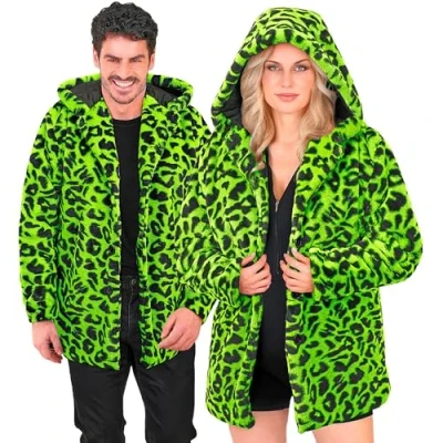 BRIGHT LEO PRINT The bright neon green with black leopard print takes urban style to a new level and makes a bold statement in any setting Casual unisex fit: with the size L/XL and loose oversized cut, the coat is suitable for men and women and is versatile to wear Fluffy plush with hood: the soft faux fur and large hood create a striking look in any occasion Streetwear for everyday use and event: the coat is suitable for different occasions - from club evening to festival - and gives any outfit a confident touch Expressive style for the brave: whether theme party, carnival or street style scene - the leo look in neon green attracts attention and underlines individual looks