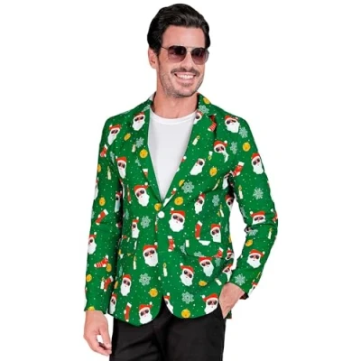 W WIDMANN MILANO Party Fashion Men's Christmas Jacket, Santa Claus, Glows Under UV Light, Professional Quality, Comfort Fit, Carnival, Theme Parties
