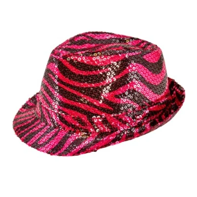 The pink fedora hat with shimmering sequins and eye-catching zebra pattern makes for an unforgettable appearance Suitable for men and women, this headpiece is the ideal accessory for anyone who wants to make a fashion statement The sequins reflect the light and make the hat shine in the party light with each of your movements Whether festival, costume party or carnival – the hat rounds off your outfit perfectly and fits any extravagant event Unleash your inner party animal and show off your wild side with this eye-catching accessory, Manufacturer: Widmann S.r.l.