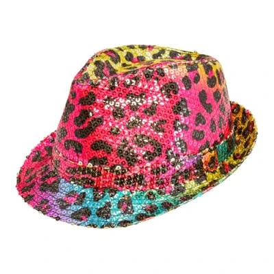 The fedora hat in rainbow colours with shimmering sequins and eye-catching leopard print makes for an unforgettable appearance Suitable for men and women, this headpiece is the ideal accessory for anyone who wants to make a fashion statement The sequins reflect the light and make the hat shine in the party light with each of your movements Whether festival, costume party or carnival – the hat rounds off your outfit perfectly and fits any extravagant event Unleash your inner party animal and show off your wild side with this eye-catching accessory, Manufacturer: Widmann S.r.l.