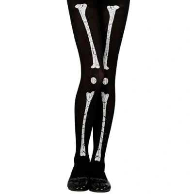 Add a touch of style and originality to your little one's costume with these skeleton tights, perfect for Halloween, Carnival and themed parties Skeleton print with realistic details, inspired by Dia de los Muertos, for a festive and charming look Made of soft and elastic fabric, they offer comfort and resistance, also ideal for budding dancers Density: 70 DEN Size: 4-6 years. Item code: 30017, Manufacturer: W WIDMANN MILANO Party Fashion