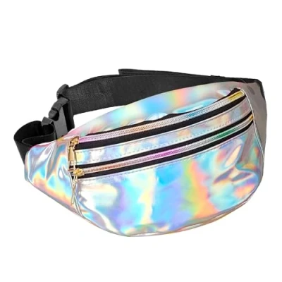 Silver shine: shimmering belt bag in holographic design, reflects the light impressively Two zipped compartments: practical storage for mobile phone, keys, wallet and other small items Adjustable strap: individually adjustable for different body sizes and wearing styles For carnival, theme parties, everyday life: goes with colourful outfits, glitter looks and 80s fancy dress Versatile wear: can be used as a fanny pack, crossbody or shoulder