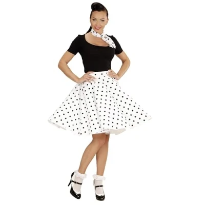 50's inspired black polka dot white skirt and scarf Perfect for Rock 'n' Roll, Twist and Pink Lady looks Ideal for themed parties, Carnival, cosplay and special events Vintage accessories for a retro and fun style Item code: 01079, Manufacturer: W WIDMANN MILANO Party Fashion