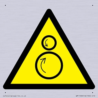 W025 Warning: Counterrotating rollers Sign 100x100mm S10