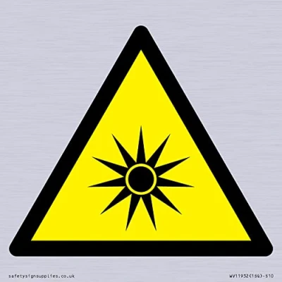 W027 : Optical radiation This sign is made from plastic semi-rigid photoluminescent Comes with3mm Corner Holes. S10 square Sign Text: