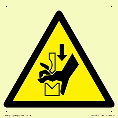 W030 Warning: Hand crushing between press brake tool Sign 100x100mm S10