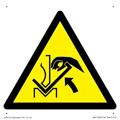 W031 Warning: Hand crushing between press brake and material Sign 100x100mm S10