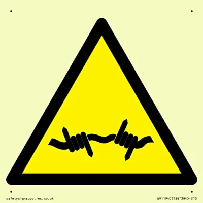 W033 : Barbed wire This sign is made from plastic semi-rigid photoluminescent Comes with3mm Corner Holes. S10 square Sign Text: None
