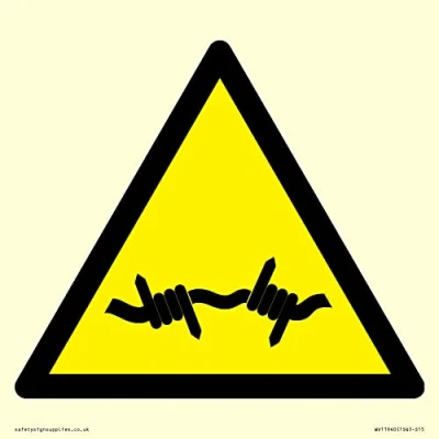 W033 Warning: Barbed wire Sign 150x150mm S15