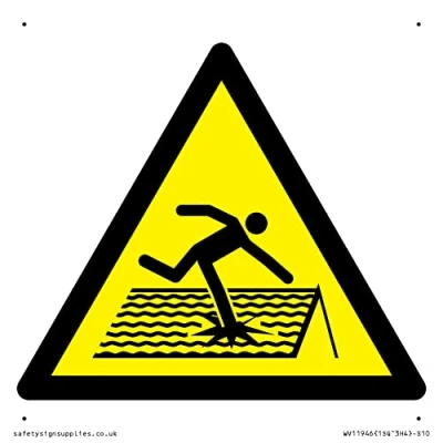 W036 : Fragile roof This sign is made from plastic semi-rigid 1mm Comes with3mm Corner Holes. 1mm thin plastic sign, can be screwed, stuck with adhesive, or attached with cable ties. Not suitable for hanging. S10 square Sign Text: None