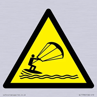 W062 Warning: Kite surfing Sign 100x100mm S10