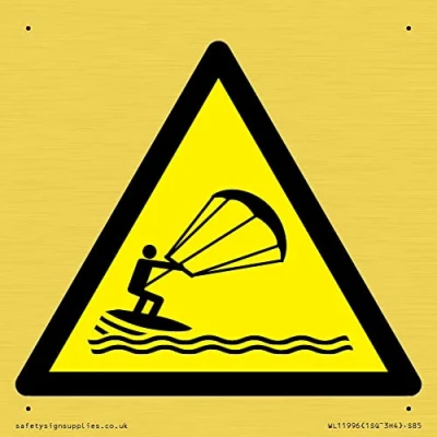 W062 Warning: Kite surfing Sign 85x85mm S85