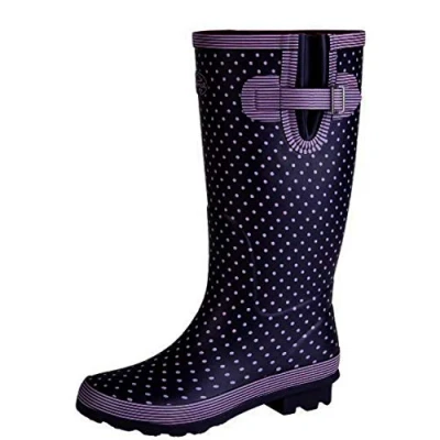 W404M 9 Navy / Mauve Polka Dot Wellies