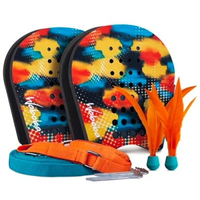 Waboba BATTLE BIRD Rethink Your Paddle Game Backyard set Includes: 2 Wearable Paddles, small birdies and a easy court to up with stakes Size 200 x 120 228 mm