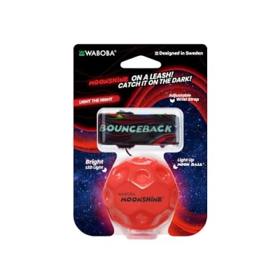 Waboba LED Bounceback Moon Ball with Wrist Strap High Bounce Tether Motion Activated Lights Improves Hand Eye Coordination Adjustable for Kids & Adults Red