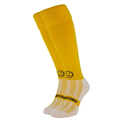 SIZING - Shoe Sizes: XS Size 9 - 12 | S Size 12 - 2 | M Size 2 - 6 | L Size 7 - 11 | XL Size 11 - 14 | XXL Size 14 - 18. Please make sure you choose the right size for you. Whether you need men's sports socks, long socks for women, or running socks men, we've got the perfect fit. MADE IN GREAT BRITAIN - from 95% polyamide and 5% elastane which ensures a snug and soft fit on the leg with extra stretch so the socks can be worn with or without shin pads. These sports socks have a fully elasticated turn over top to ensure they stay up while playing your sport. Our knee-high socks also feature external smooth toe seams to make blistering a thing of the past keeping you in the game longer. ELASTICATED BAND - All our socks have an elasticated ankle for support and an elasticated central foot band to help reduce slippage. Perfect for all types of physical activity, comfortable and durable allows you full range of motion, keeping you cool and focused as you exercise. Whether you're looking for rugby socks, hockey socks, womens sports socks, mens sports socks or general sports socks, our product ensures comfort and durability during any physical activity. MOISTURE-WICKING TECHNOLOGY: All our sports socks have COOLMAX Pro ultra-high performance padded footbeds that regulate temperature by pulling sweat away from the skin, keeping your feet cool and dry throughout your match. Ideal for anyone needing rugby socks, hockey socks, running socks women or men's sports socks, these are perfect. WACKY DESIGNS - Featuring strong and vibrant plain colours these socks are the perfect choice for team socks. Ideal as rugby socks, hockey socks and most team sports socks.